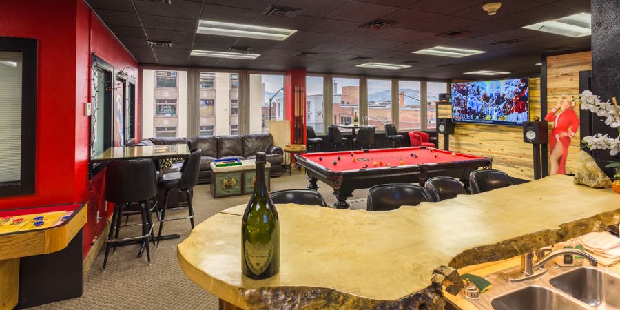 The Red Room is Missoula’s premiere private rental & VIP lounge in the heart of downtown. With such a convenient location you will have easy access to all of your dining, entertainment, recreational and vacation needs. This unique rental suite is steps away from the Clark Fork River, the University of MT and the best of Zootown! Featuring 2 private bedrooms and luxurious bathroom, kitchen/functional bar, pool table, shuffleboard table and incredible views of the M, Lolo Peak & downtown Missoula.