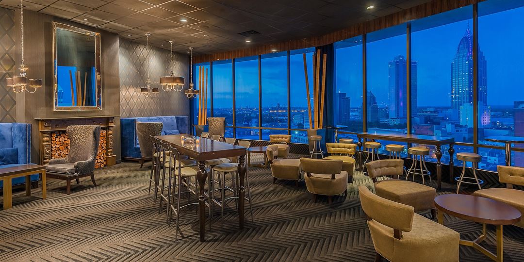 If you're planning a meeting or event in Mobile, AL. Our hotel has the perfect facilities, with ten flexible meeting rooms and more than 10,000 sq. ft of space. From our boardrooms to our ballroom. Also, our SkyView Lounge that provides a mesmerizing backdrop to any event! Boasting more than 1,200 sq. ft. overlooking Mobile Alabama skyline and the Mobile Bay.