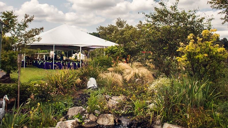 Surrounded by ten acres of lush farmland, stunning gardens, and beautiful water features, Falling Water Gardens offers an idyllic setting for your upcoming wedding celebration. Begin your special day getting ready in two luxurious glamping tents. These tents include plenty of seating, a full-length mirror, a microwave, and a fridge. Then, exchange your vows in one of the many picturesque spots on Falling Water Gardens’ perfectly manicured lawns. The gorgeous surrounding landscape will provide a breathtaking backdrop for your outdoor ceremony.