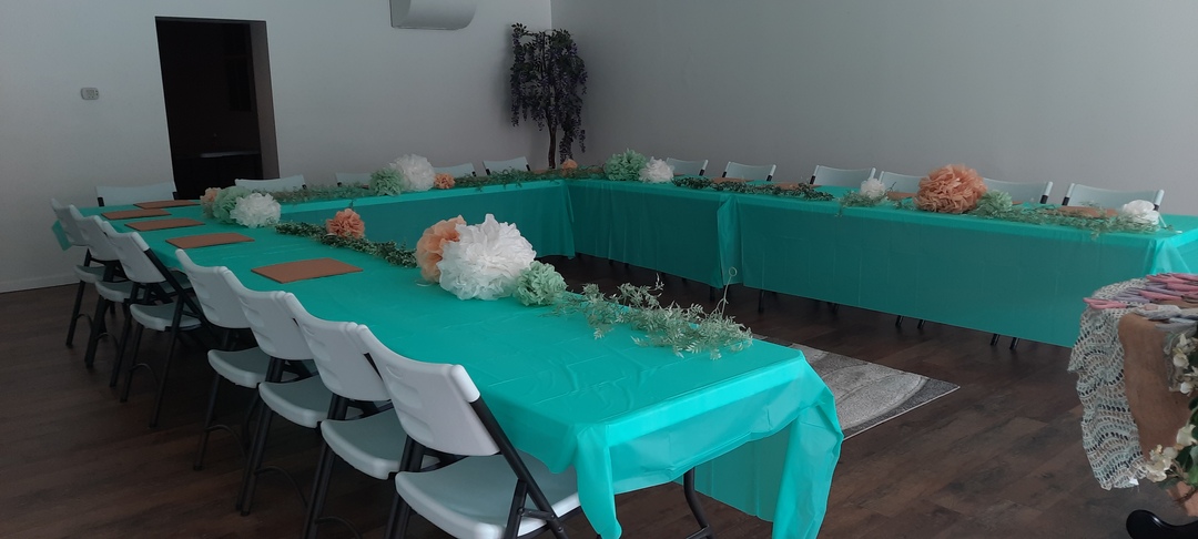 A refundable $75 deposit. Terms and conditions apply. Tables and chairs are provided. Please note, smoking is prohibited.
