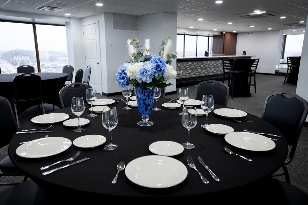 Step into our penthouse floor suite, complete with a variety of multi-purpose areas, accommodating up to 110 guests perfect for your gathering or occasion of any kind.