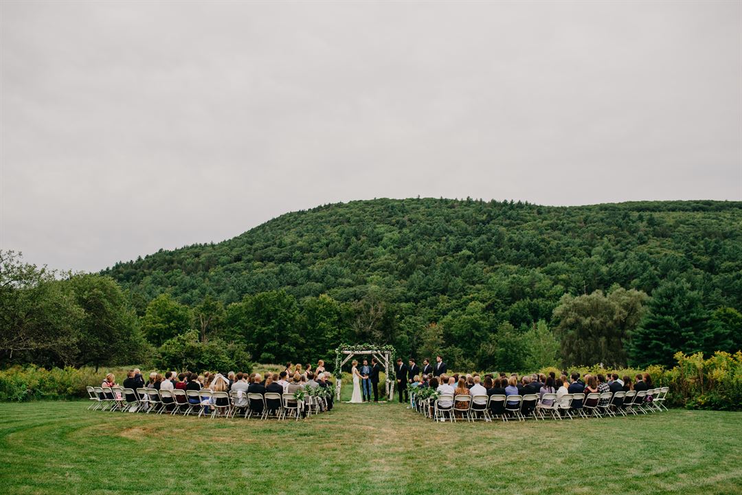 Beginning in 2022, our couples will work with our exclusive in-house caterer, Wheelhouse. Some of our other amenities include on-site accommodations, a wedding lounge, yurt, an ADA-compliant lift, and accessible restrooms. Two streams run through the property and the Robert Frost Trail is within walking distance. Coming attractions include the addition of 5 beautiful Cabin Retreats on site, as well as options for floral design. Get in touch today to talk about how our team can personalize your experience in our extraordinary place. We'd love to provide you with more information and book you a tour.