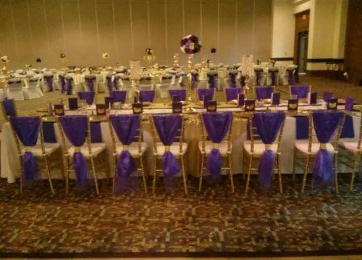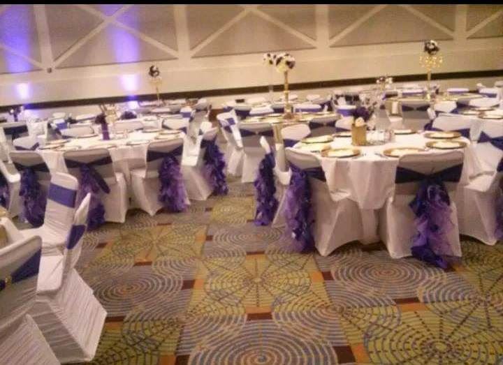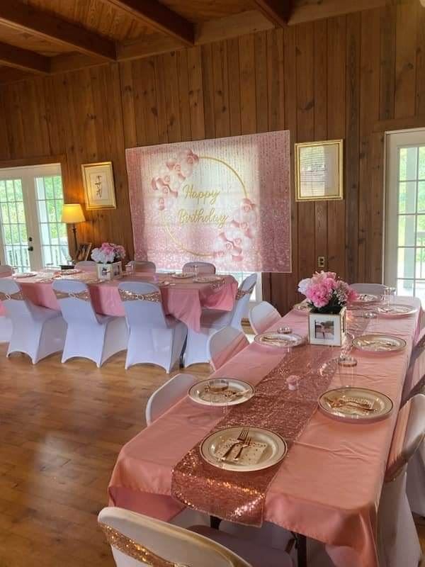 Choose your sashes, runners, overlays, charger plates, floating candles, and elegant centerpieces. We also offer beautiful floral arrangements and themed designs to bring your vision to life.