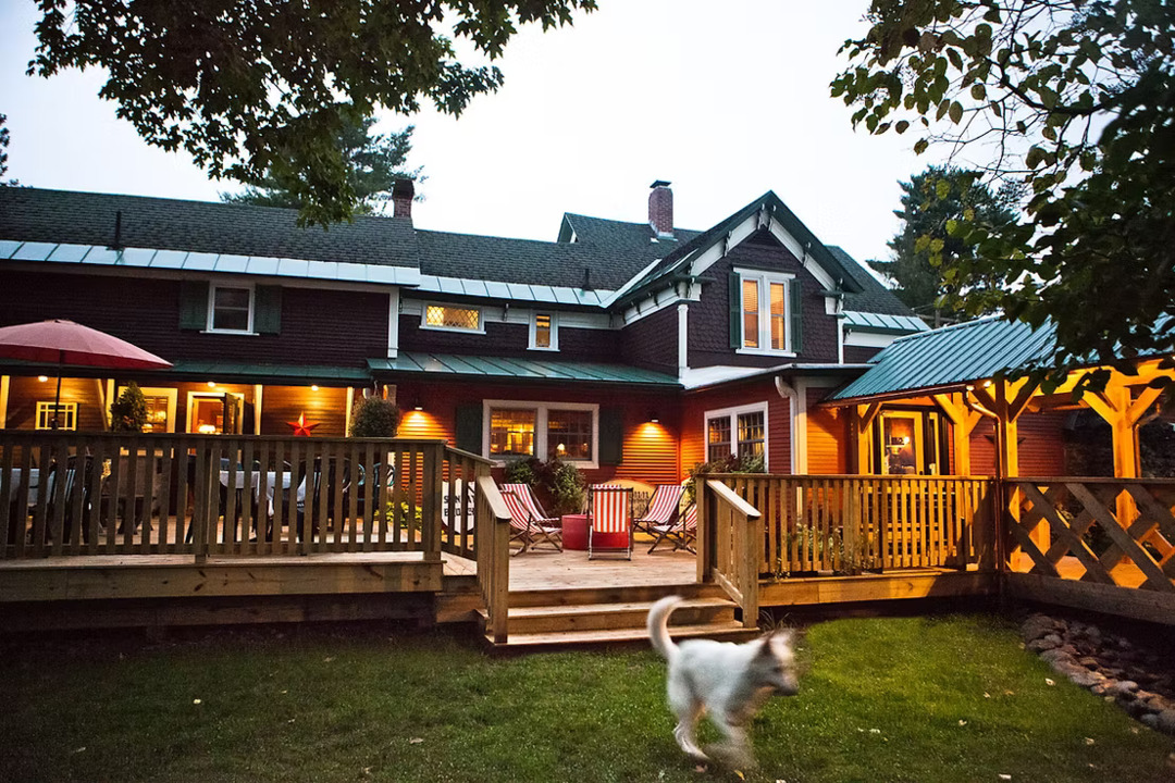 The INN itself is a historic, rambling 7,000-square foot former lumber baron's home built in 1890, complete with an attached carriage house and views of the nationally designated “wild and scenic” Trout River flowing out back. It has been renovated with great care from stem to stern, creating a warm, inviting space that embraces guests with surprising amenities, décor, and special touches at every turn. It is an eleven-room boutique hotel, with a fantastic bar and gourmet restaurant in the heart of Montgomery Center, a picturesque yet quirky ski town just down the road from the ever-growing Jay Peak, four-season resort.