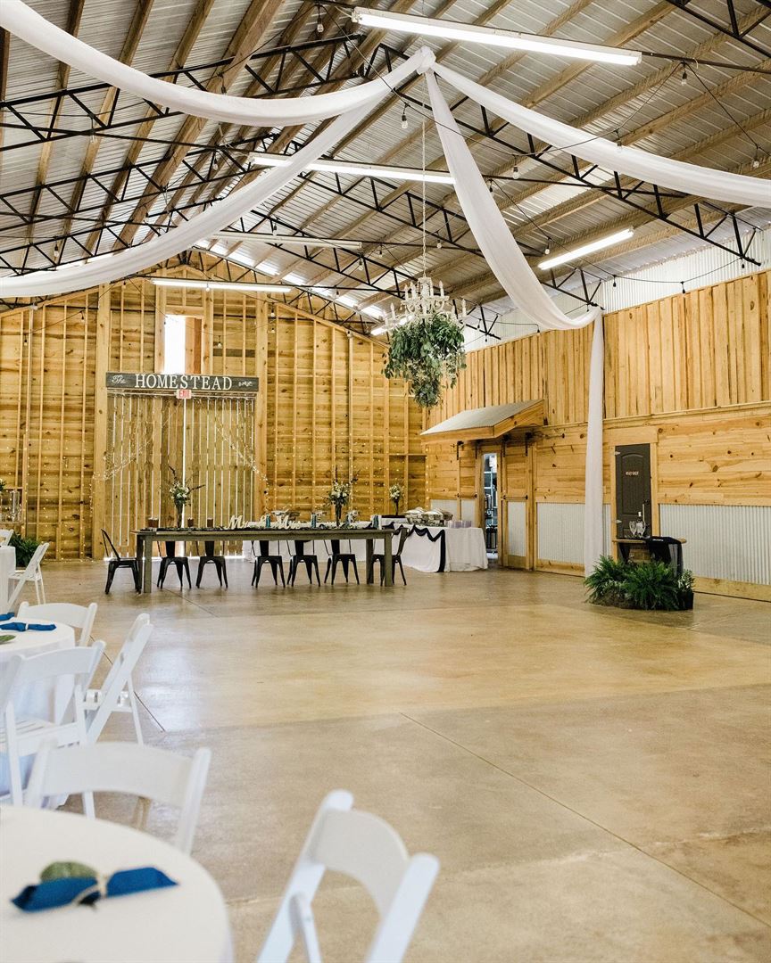 The Homestead Barn originated from owners, Mark and Sheila Winchester’s desire to design a space to celebrate life’s greatest moments, both private and corporate, while serving the community through Christian ministry and fellowship. With 6,400+ square feet of event space, The Homestead Barn is a perfect venue for any event! We offer 93 acres of mossy oaks, southern pines, and breathtaking scenery.