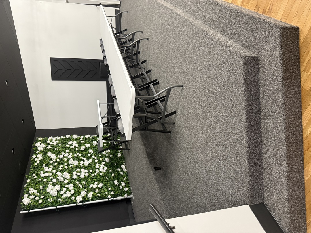 Special Features: Original hardwood floors, stage, LED lighting, Bluetooth sound system, 75” Smart TV, and prep kitchen. The tables and chairs are included in the rental.