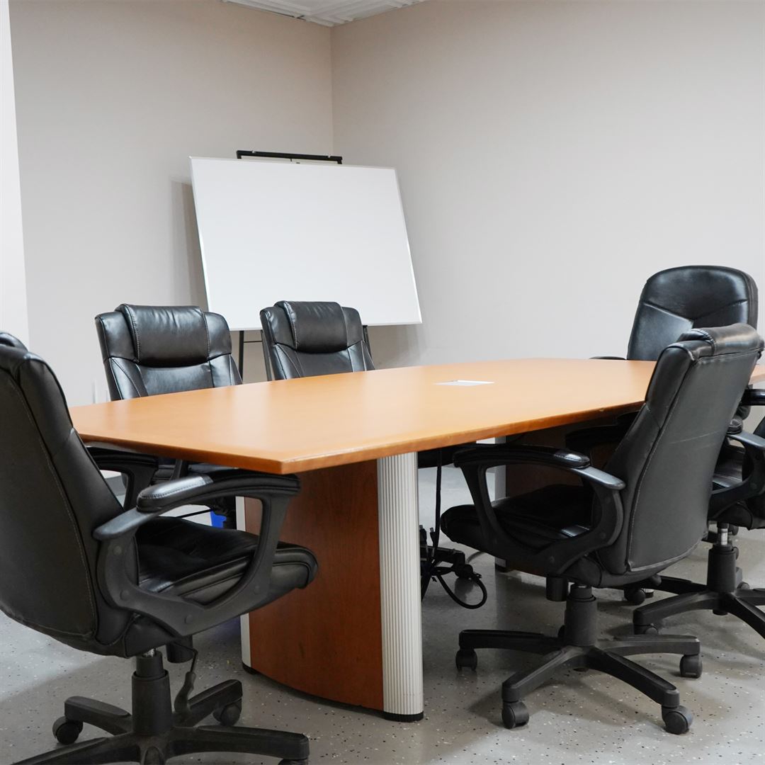 On the ground floor, you will find a large easily accessible conference room that seats 12 with lots of natural light. You will have access to a large blackboard, a television and several places to plug in your devices for all your presentations.