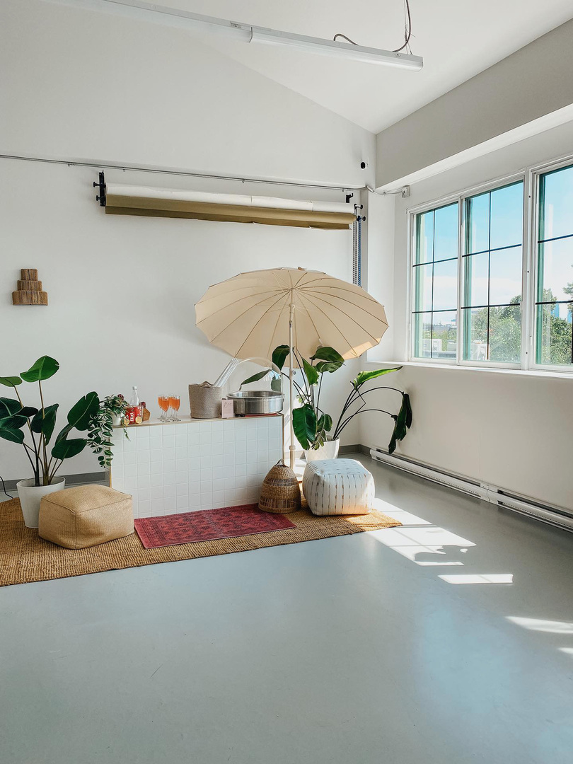 Whether you're planning a photoshoot, film production, brand activation, podcast recording, or a private event, our modular layout adapts to your vision. Minimal yet inspiring, the studio offers curated furniture, clean lines, and thoughtful touches that make every shoot or celebration feel effortless.