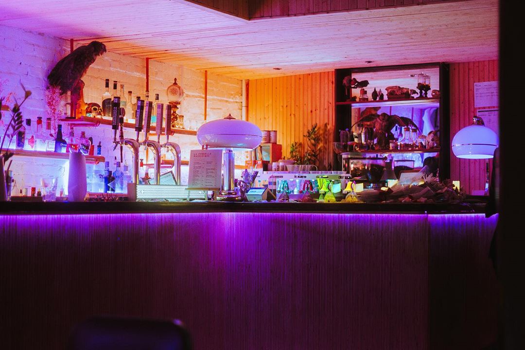 Upon entering, guests are enveloped in a mesmerizing atmosphere that seamlessly merges vintage aesthetics with avant-garde bohemian flair. The air is infused with a sense of familiarity and artistic intrigue, enhanced by an eclectic mix of art, taxidermy pieces and touches of greenery that breathe life into the space.