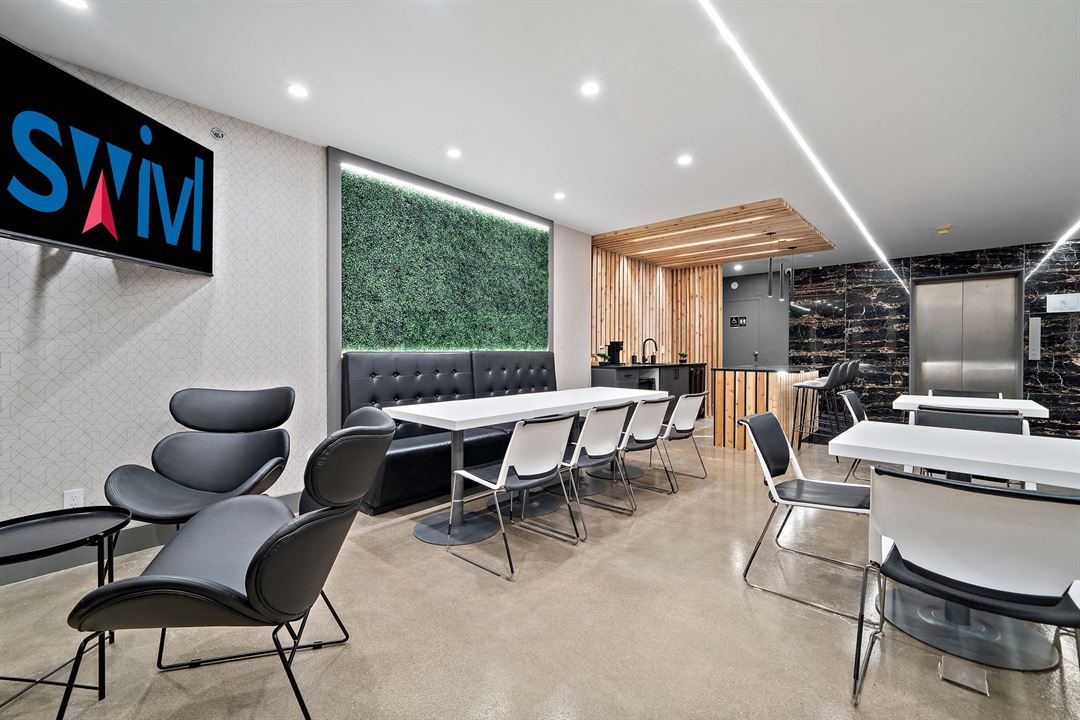 Swivl is a shared office space company with a beautiful lounge area and large boardroom available for rent for corporate office parties/events, workshops, networking events and more. We are located and occupy the entire mezzanine floor of a beautiful office building with a private entrance at street level.