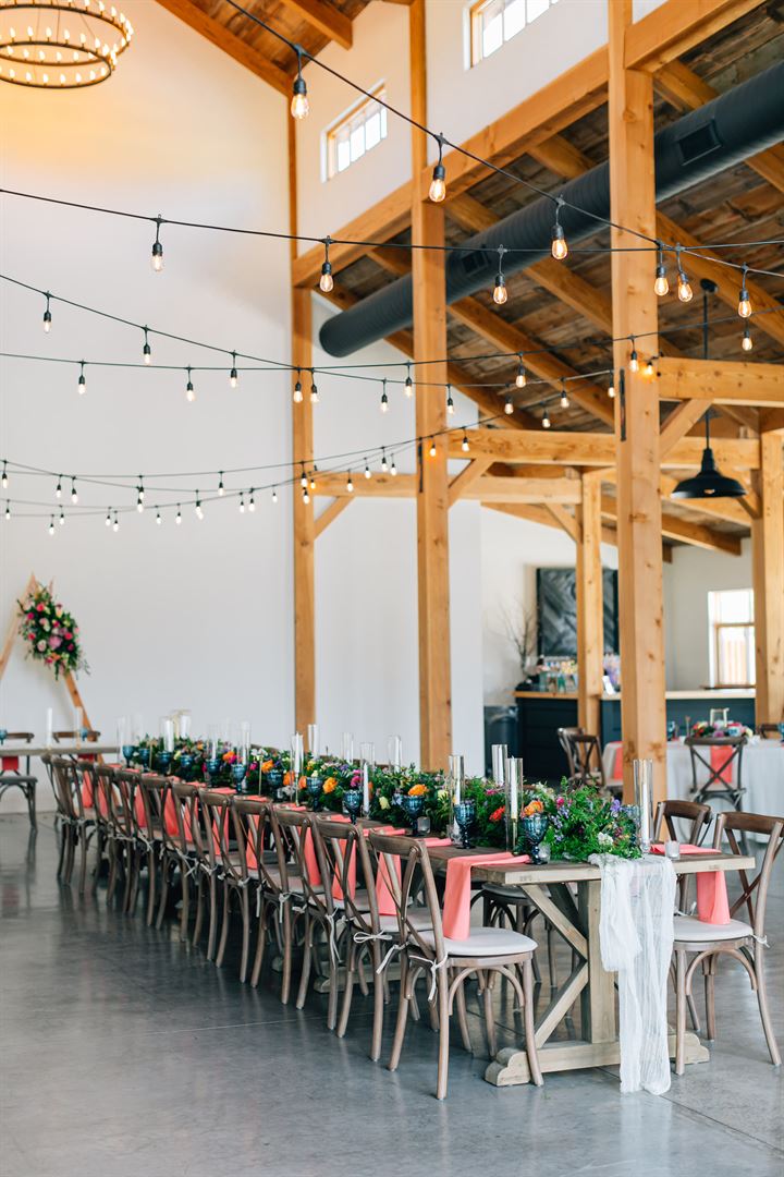 And our property is simply stunning. Imagine yourself walking under the romantic bistro lighting along the tree lined walkway leading to our front door or taking in the meticulous craftsmanship inside our main hall with vaulted ceilings covered in rustic wood planks and modern chandeliers. Imagine your first look on the private patio outside of our bridal suite, surrounded by nature or taking in the breathtaking mountain views that are the backdrop for your ceremony.