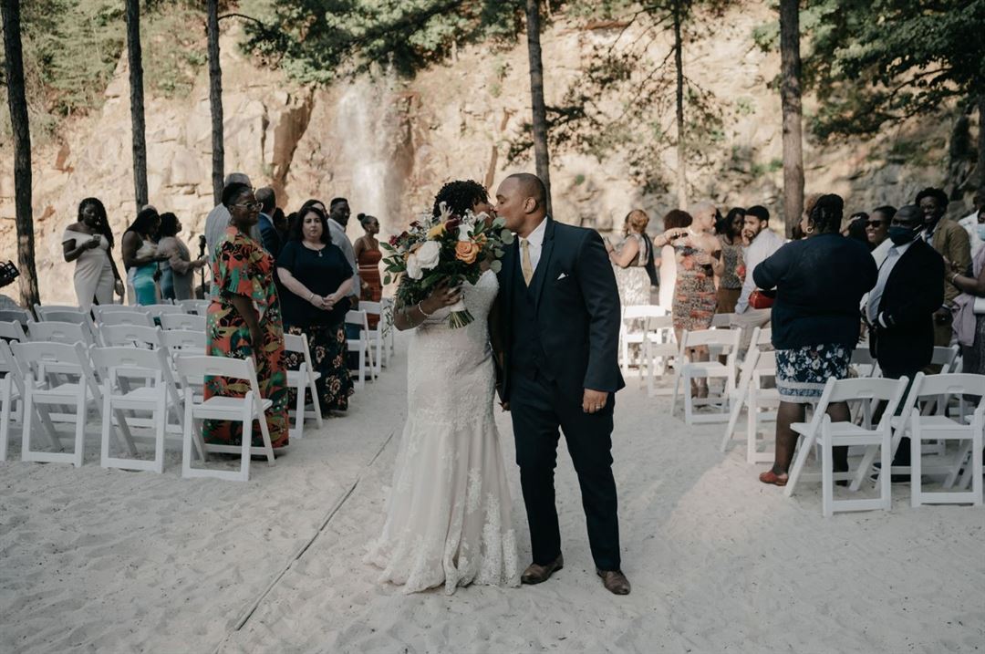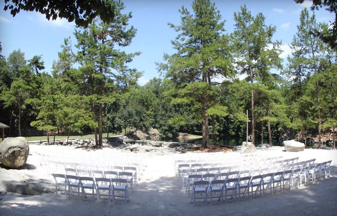 The Quarry at Carrigan Farms is described by many as a piece of "Heaven on Earth." Quarry visitors marvel over the perfect ambiance, which blends mountain and beach vistas. Its natural granite walls define the private location and rise to 70 feet. The Quarry’s curving boardwalk, filtering into a white sugar-sand beach, is reminiscent of time-honored beach style. The large covered pavilion and beautiful grassy area are the definition of charm. The deep blue water and massive granite walls combine to form an incredible wedding backdrop.