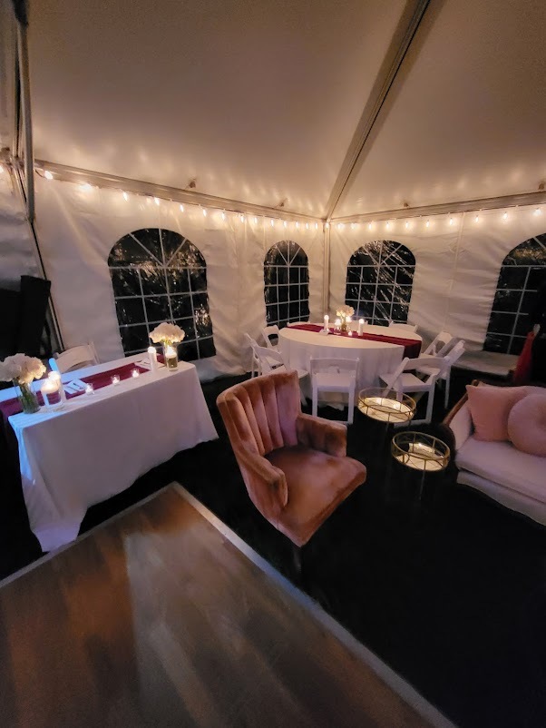 Our All-Inclusive Venue (Venue - Catering - Bar Services, Rehearsal Dinner, "After-Hour off-site Space until 2 am") features a picturesque outdoor Tented Ceremony & Reception space, a private indoor luxurious Bridal suites, Grooms space and Rehearsal Dinner space with lake view.
