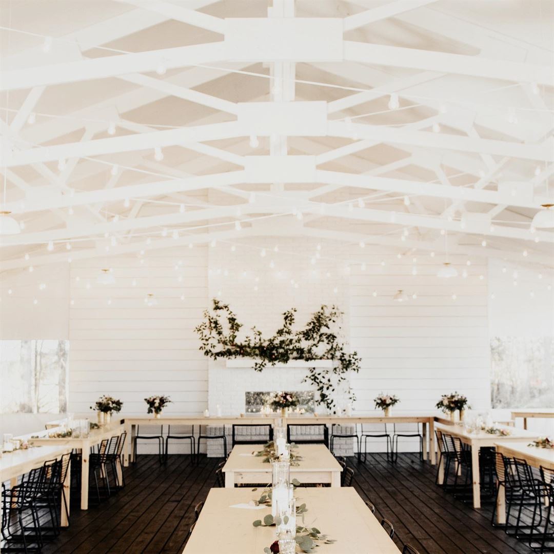 Included Amenities: Hand crafted wooden benches, lawn games, custom wood built harvest tables and chairs, fire pit, catering prep area, restrooms, on-site parking