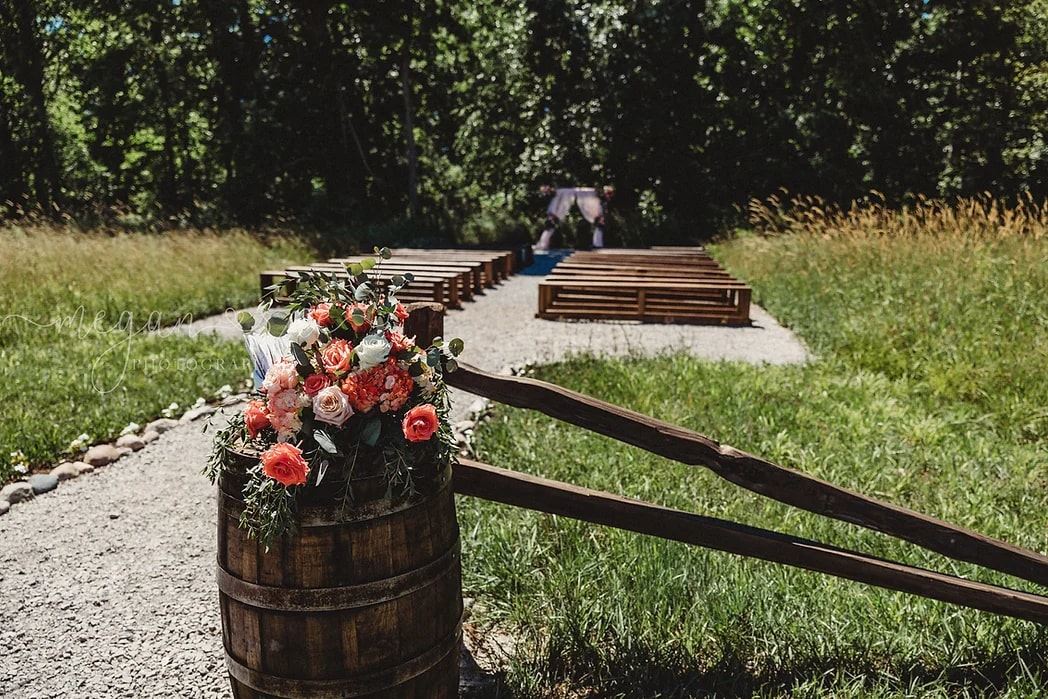 The venue is located on 40 acres that are surrounded by beautiful landscape. The property has wooded areas and meadows that give you many options for photographs that capture your special day.