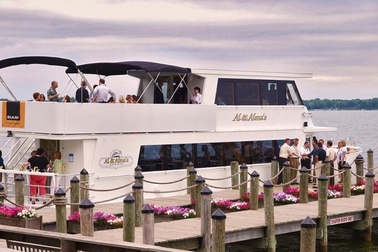 The perfect fusion of spectacular scenery and attentive award-winning service aboard Al and Alma's magnificent Lake Minnetonka Fleet. Transcend expectations of four-walled meeting spaces and land locked dining rooms for a 360 degree view of Lake Minnetonka's incredible shoreline, islands, and homes. Business and personal events for private groups can reserve an entire yacht to take advantage of personalized cruise details. With individual yacht capacities from 20 to 149 guests and combined capacities of over 400 guests, Lake Minnetonka's largest and most experienced fleet will accommodate your group's needs! Delightful food and drink menus designed by you and your event planner will champion the day and help to create lasting memories for your family, friends, co-workers, or clients.