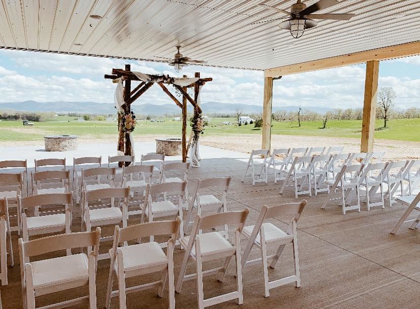 Frieden Farms provides a picture-perfect setting of rolling farmland, the Blue Ridge Mountains and Massanutten Peak to the East. The breathtaking views around our farm are one-of-a-kind and the perfect backdrop for your wedding ceremony and reception. We aim to provide you with excellent customer service and are honored to share our farm with you for your special occasion. We have a climate-controlled building with a covered patio, firepits, and partially open cocktail hour area.