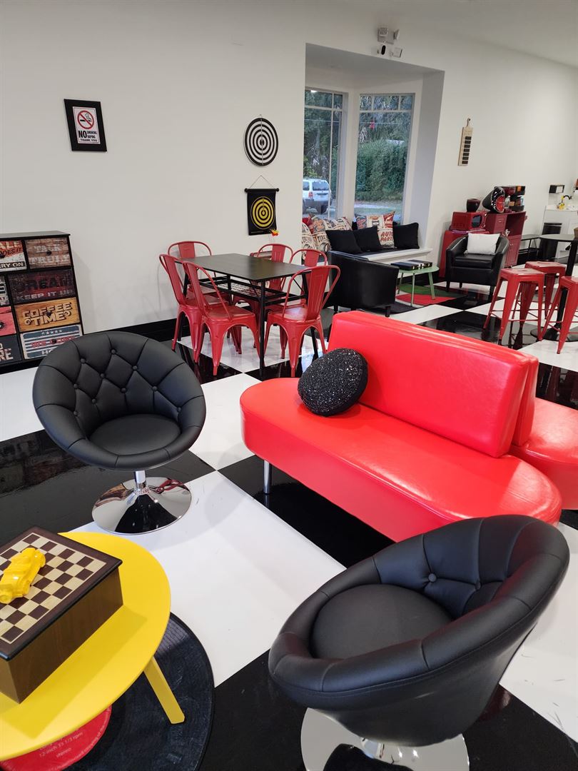 Events venue for families, friends, and corporate groups. We offer a vintage-style lounge to get together, play board games, and race slot cars in a 90-feet racetrack. Ideal space for birthdays, anniversaries, retirement celebrations, team building and more.
