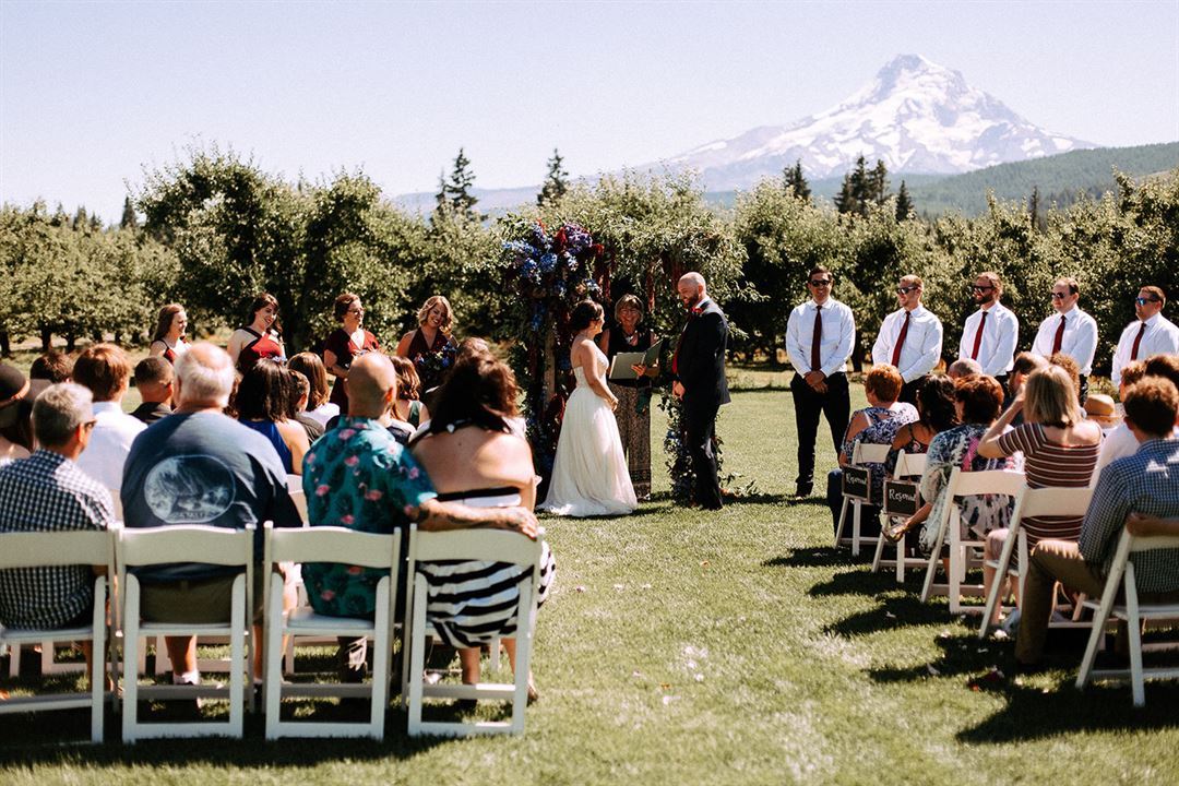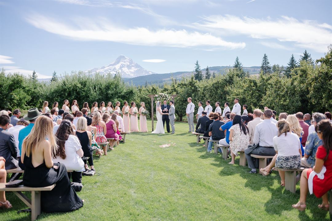 Welcome to a one-of-a-kind wedding venue in the Hood River Valley—the Orchard Meadow at Mt. View Orchards in Parkdale, OR. Framed by a stunning view of Mount Hood and surrounded by beautiful apple and pear trees, fields of flowers, the Orchard Meadow is a truly magnificent site for your big day.