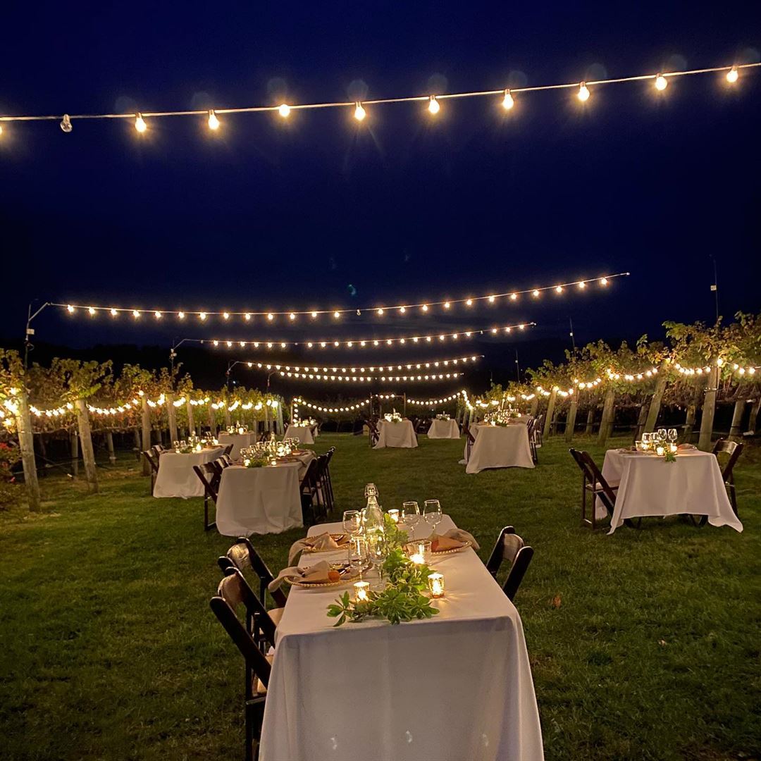 We have multiple outdoor areas to host events. The ceremony site in the vineyard can seat 250+ people. The tasting room building has a large event room upstairs that can seat 100 people. We also have an additional "Barrel Room" which is now used as an event space. Caterers have full use of our commercial kitchen for events. Contact us today for more information!