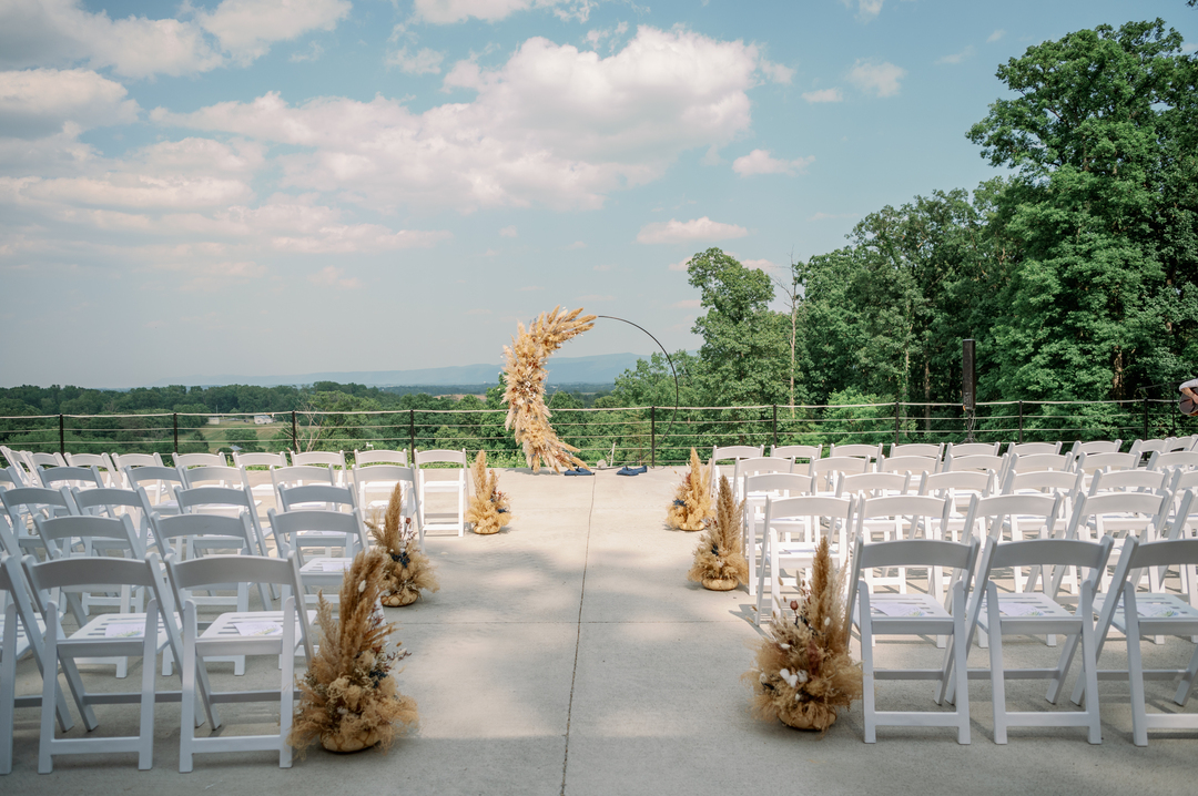 The main ceremony site in the vineyard can seat 200+ guests.