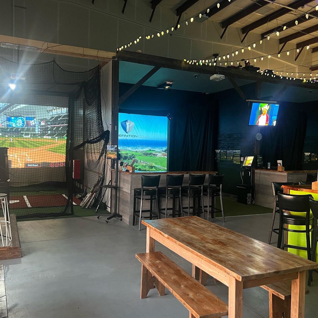 GolfShotz has a large, elegant live edge cocktail bar on the main floor and two smaller live edge bars on two mezzanines. The establishment hosts 3 HD Golf simulators and 1 HitTrax baseball simulator, as well as a ping pong table, dart boards, board games, and corn hole, which makes it a great place for team building events, bachelor parties, receptions, etc. Display your company logo, pictures or slideshows on the projector screens to personalize your event.