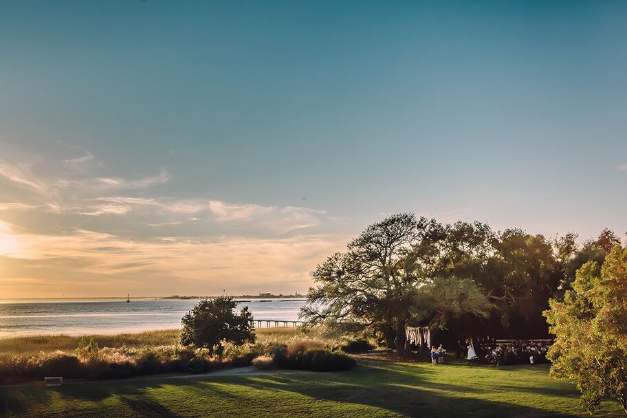 Alhambra Hall is nestled in the Old Village section of Mount Pleasant. Overlooking the Charleston Harbor, this former Ferry Terminal is appointed with hardwood floors, vaulted ceilings and breezy southern porches that wrap three sides of the building. We host only one event per day so there are no conflicts between events.