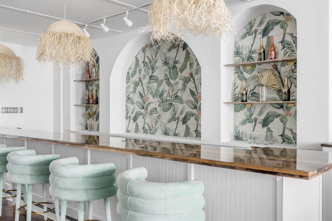 Located at 345 King Street above the Kenny Flowers Flagship Store, our sun-kissed second floor features high ceilings, large seating areas, and a swanky tropical bar. Take a stroll outside to our Instagrammable patio roof deck, inspired by an Amalfi Coast beach club. The Cabana Club venue can be your own personal slice of paradise in the heart of charming Charleston.