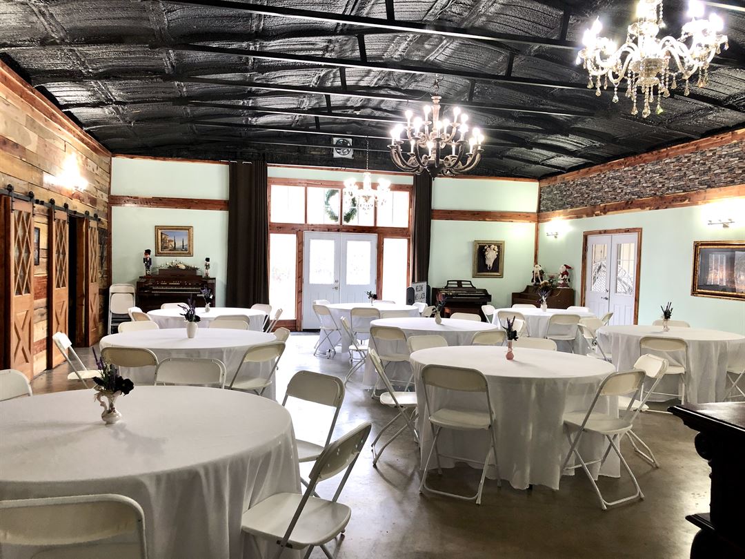 Located in the piney woods of Northeast Texas we can accommodate a variety of themed Weddings and Parties both inside and outside. If you can imagine it- we would like the opportunity to help you achieve it. Call us today for your Wedding and Party free consultation and tour.