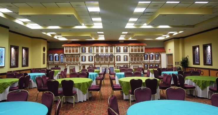 The center brings Safranbolu Houses and Sanliurfa Houses from Turkey. The center includes wide variety of representations from countries like Turkey, Azerbaijan, Turkmenistan, Kazakhstan, Uzbekistan, Kyrgyzstan, Bosnia and Herzegovina. The convention center consists of a reception hall (URFA Lobby), and the ball rooms on 4250 square feet.