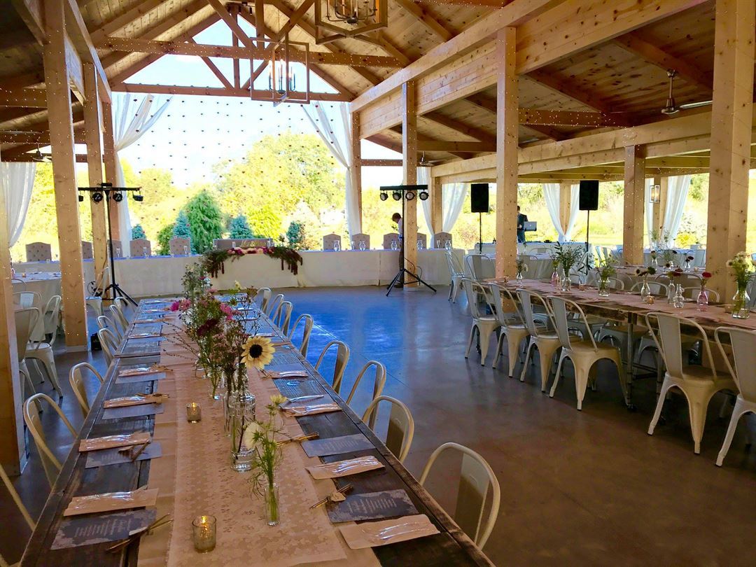 Flora and Field is a stunning event venue located in Mount Sterling, Ohio. It features a barn-style banquet hall with soaring wooden ceilings and rustic accents throughout. Expansive windows overlook the rolling hills that span the property, providing an idyllic backdrop for any event. There is also a private Bridal Suite with a makeup area, a lounge area, and a separate sitting room. Guests can wander through the countryside and take in the beauty of the nearby lake, while cocktails can be served on the patio that wraps around three sides of the property. Flora And Field is the perfect setting for weddings, corporate retreats, and more, offering ample space to accommodate any event. With its picturesque views and tranquil atmosphere, Flora And Field is an oasis of beauty and serenity.
