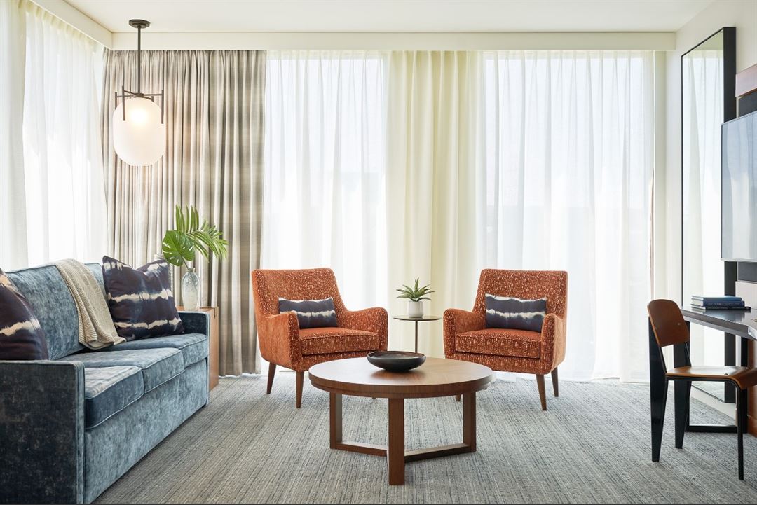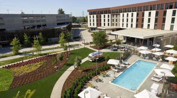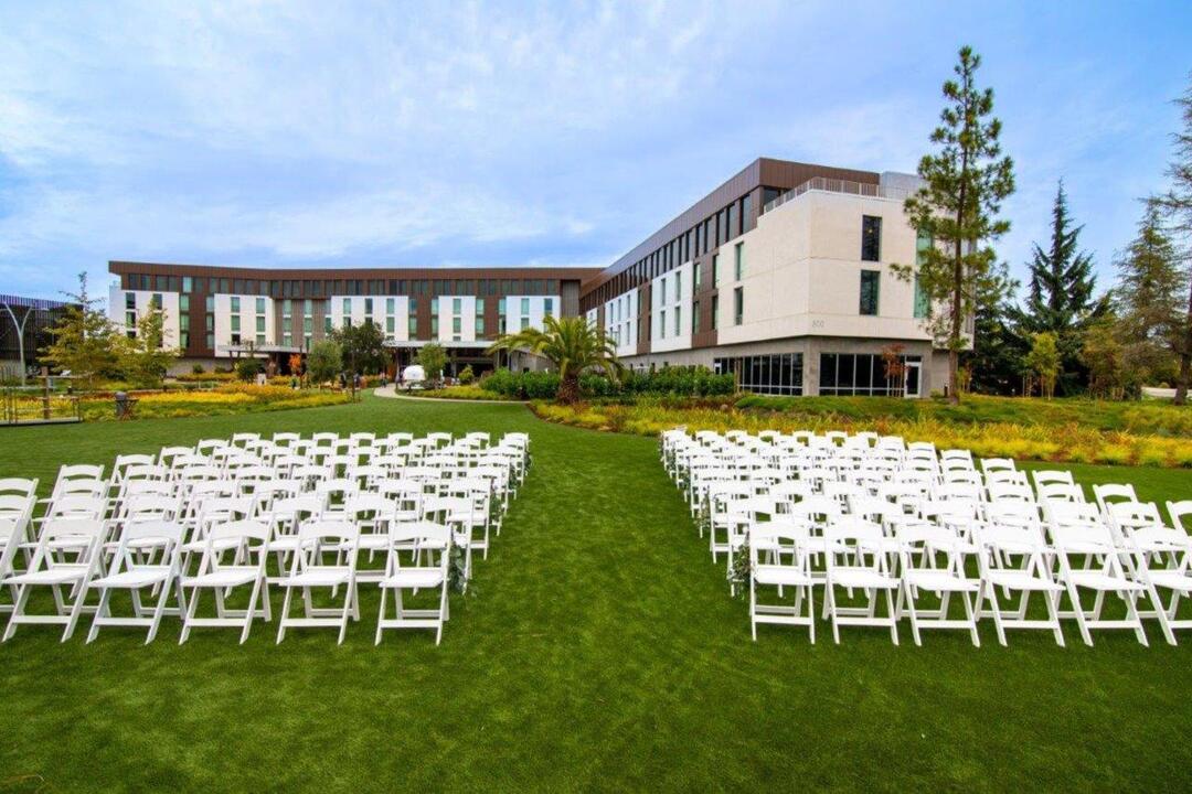 Whether you are planning a corporate meeting, fundraising dinner, wedding or celebratory event, the Ameswell Hotel offers a variety of unique indoor and outdoor venues to help you bring your vision to life in the heart of Silicon Valley. The flexible Infinity Ballroom has floor to ceiling windows that create generous space filled with natural light, easily accommodating large groups. For smaller meetings, the Discovery Boardroom, Curiosity Breakout Room, Ames Library and the Hangar One Art Gallery offer a variety of opportunities for creative gatherings or breakout sessions. The expansive Field and Meadow offer unique outside, open air venues where the sky really is the limit on what you and your team can create.