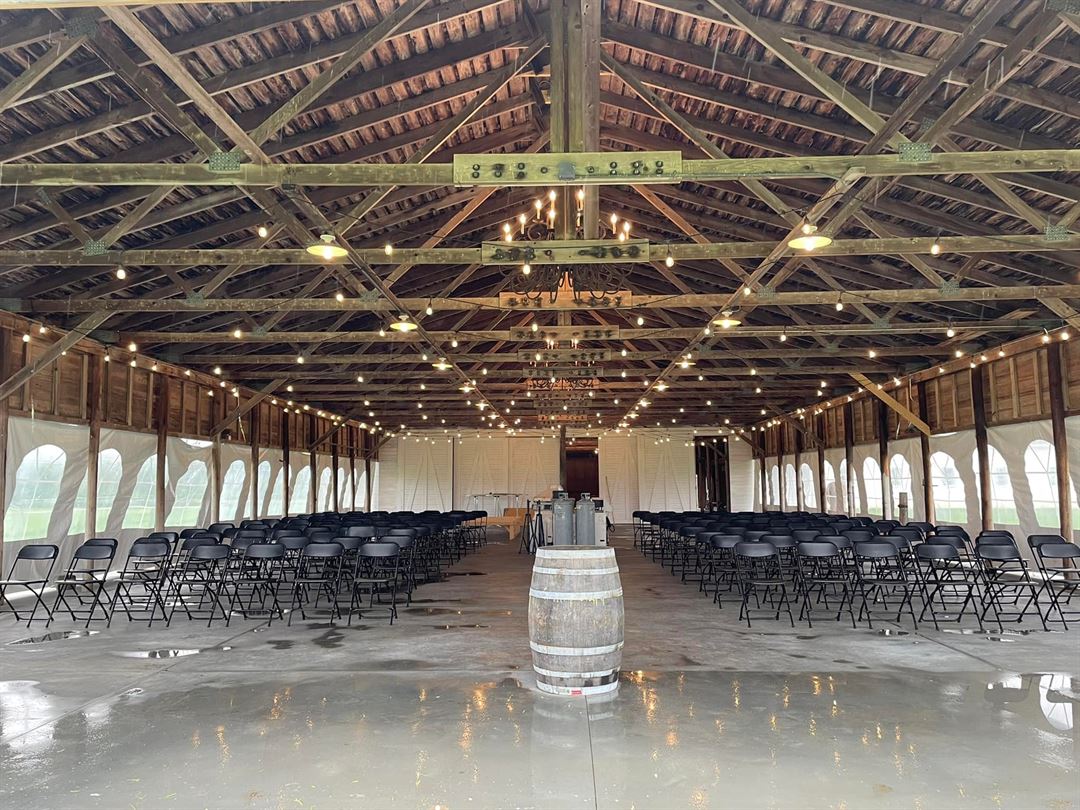 Make your event stand out in this large 8,000 sq ft barn with both enclosed and pavilion sections. Features include a giant grass courtyard surrounded by white barns, large oak tree, and rolling fields. The renovated 8,000 square foot space contains enclosed area with six sets of sliding barn doors and an open air pavilion area under one roof! Room for 240 seated for dinner plus other configurations to match your event plans. This Wisconsin Wedding Barn Venue boasts spectacular views of the countryside.