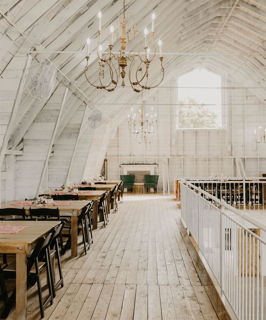 The Blossom Barn is a restored dairy barn featuring an all-white interior, exposed brick, tons of natural light, exposed beams, elegant chandeliers, and separate bride and groom suites in the silos for getting ready. Our venue is truly one of a kind, unlike any other venue around! Our spaces provide an intimate romance and nostalgic ambiance unlike anywhere else! You must see the Blossom Barn today!