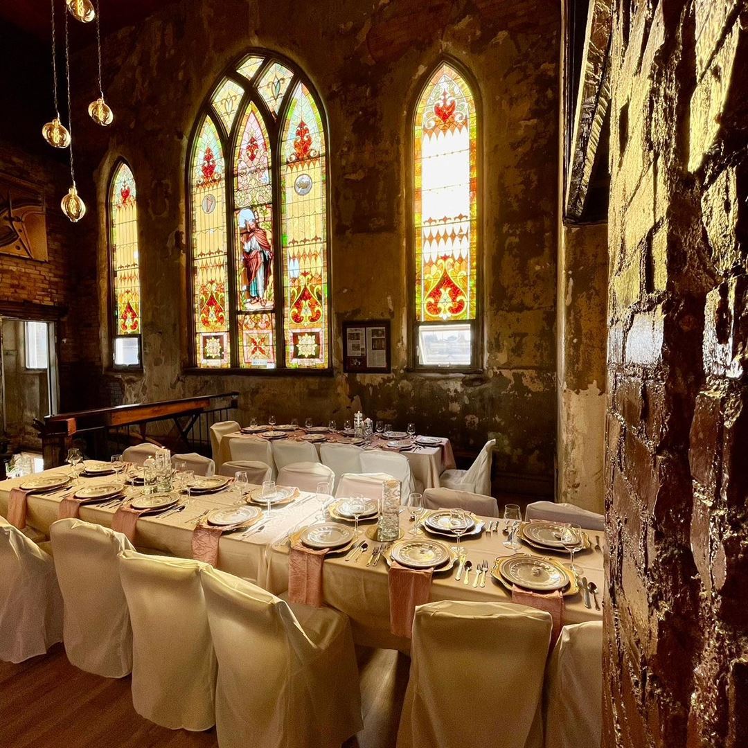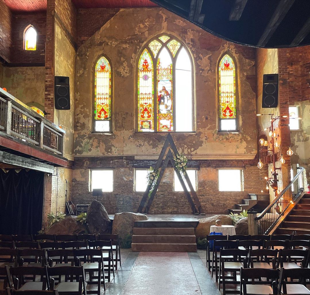 The building was originally built in 1902 and started as a Christian Church. In the early 2000s, it was abandoned and sat empty until 2019 when it was purchased and renovated into a beautiful historic venue space. Our mission is to provide a place for all to enjoy their special day or event. Please visit our website or contact us for more information!