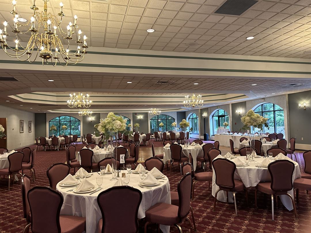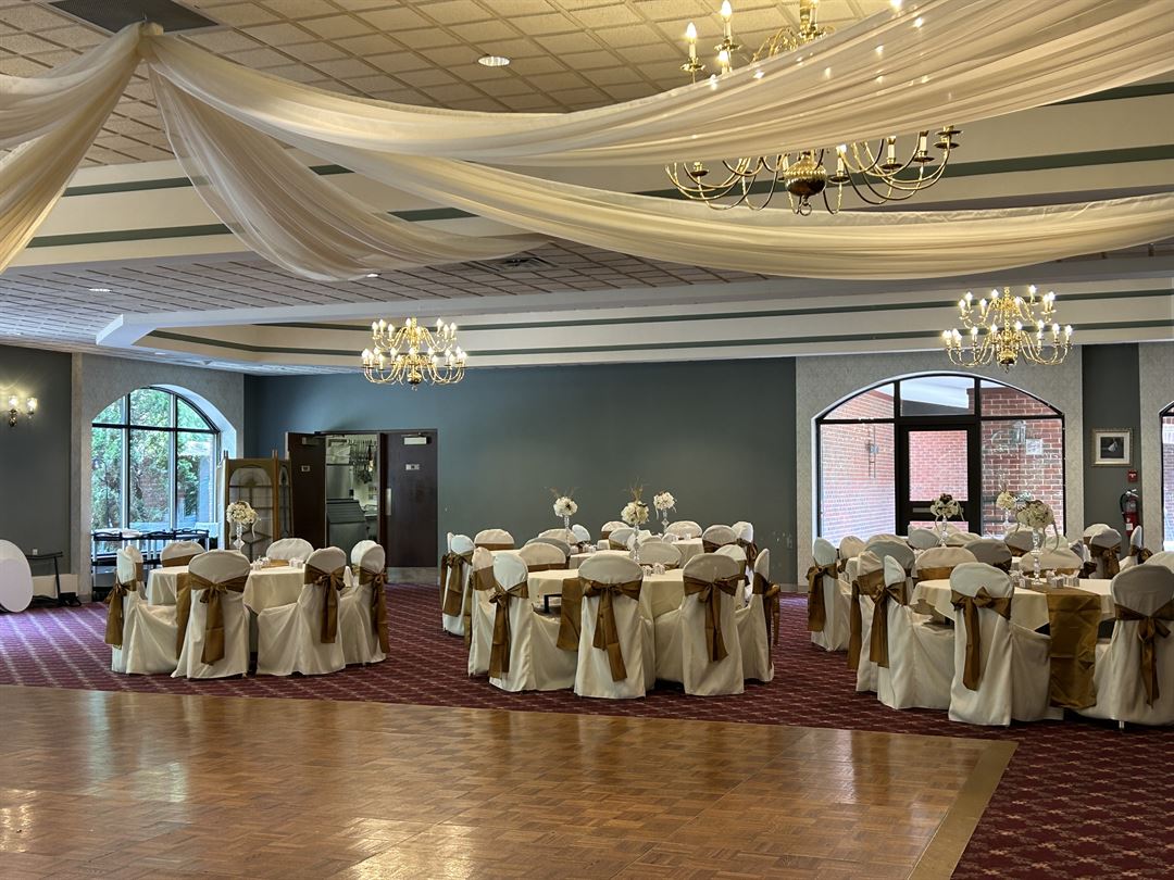The Cloister in the Woods has been referred to as the hidden gem of banquet halls in Northwest Indiana. Large arched windows, trimmed with white lights, surround the facility and offer views of our private patio, The Cloister courtyard and Bieker Woods. It is a private & scenic setting all year round.