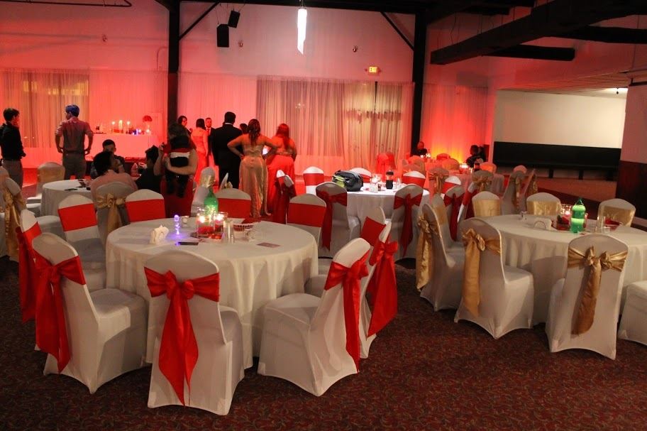 Spacious lobby with TV, bridal suite, high ceilings with chandeliers, top of the line in-built sound and lighting system, spacious prep kitchen and ample parking.