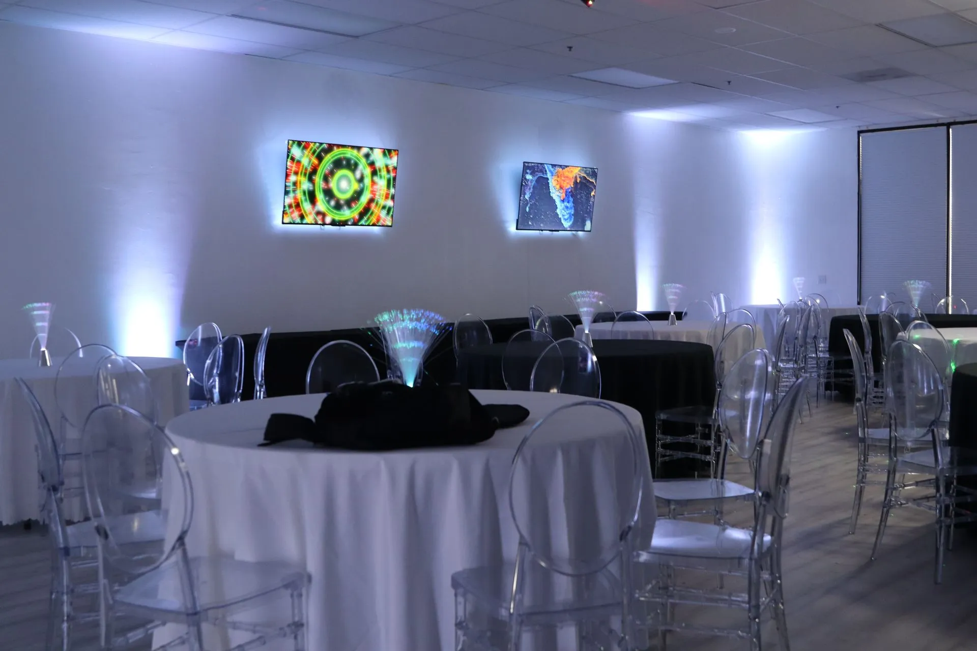 The Private Party event space is a beautiful 2,000 square foot facility with two restrooms, a food prep area, and a bar with an ice bin and a commercial refrigerator. Our facility offers three 55 inch flat screen TVs and a projector that can be used for presentations, slide shows, to display logos, and more. The space also has an audio system with wireless mics, and connections can be made to all audio and visual equipment with Wi-Fi or Bluetooth.