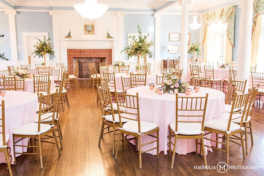 Filled with charm and elegance, our two adjoining ballrooms feature the original hard wood floors, crystal chandeliers, fireplaces and original decorative moulding. The expansive covered back porch has a beautiful view of our grand lawn, where most on-site ceremonies take place.