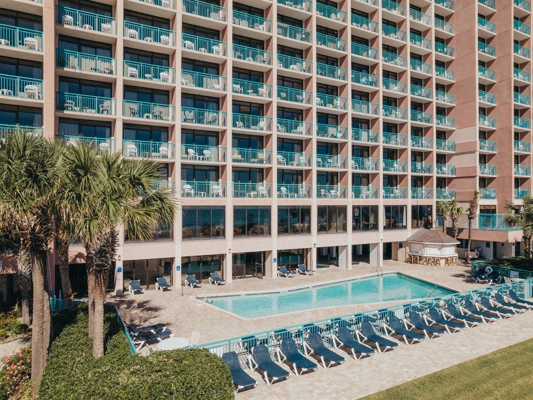 Our beautiful oceanfront resort is just a short distance from Springmaid Pier and Damon's Oceanfront Restaurant, with close proximity to local sailboat rentals and parasailing rides. After a day of adventure, guests enjoy on-property amenities including indoor and outdoor pools for adults and children, jacuzzis, lazy river, oceanfront lawn area, and seasonal poolside cabana bar — let us plan your evening meal or banquet.