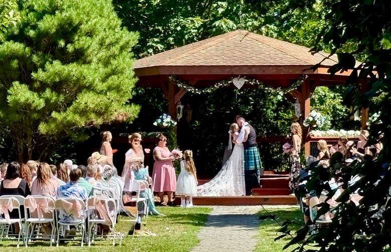 The Blue Heron Estate has countless exquisite backdrops for your forever photos. You'll find vine drenched arbours, 2 gazebos, wooden bridges, a gorgeous pond complete with waterfall and many enclaves of trees and gardens to help showcase your special day.