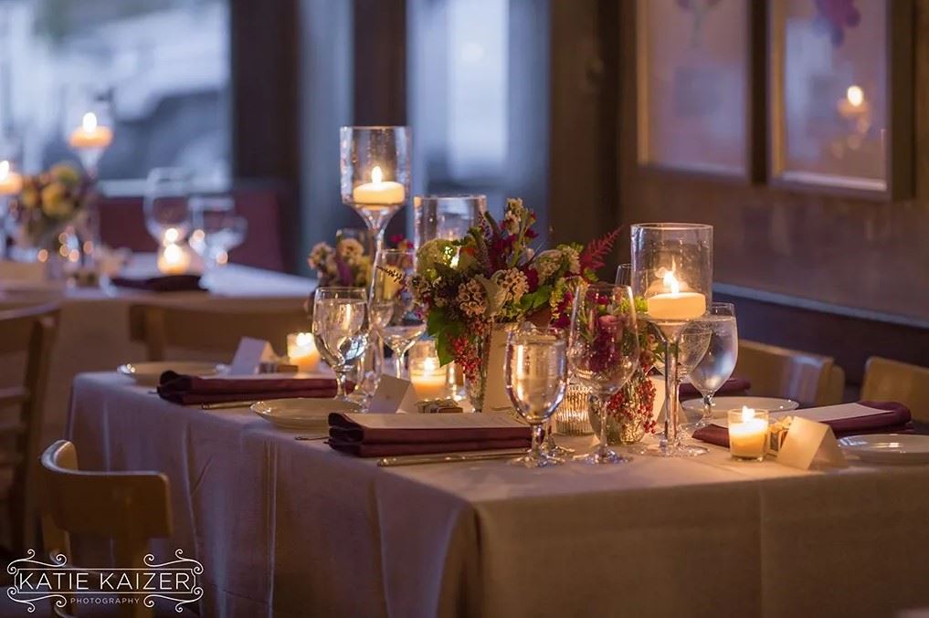 With our charming outdoor, covered patio, heated in the cooler months, or our intimate dining room and bar, we are able to accommodate smaller dinner parties all the way up to a 100 person cocktail reception.