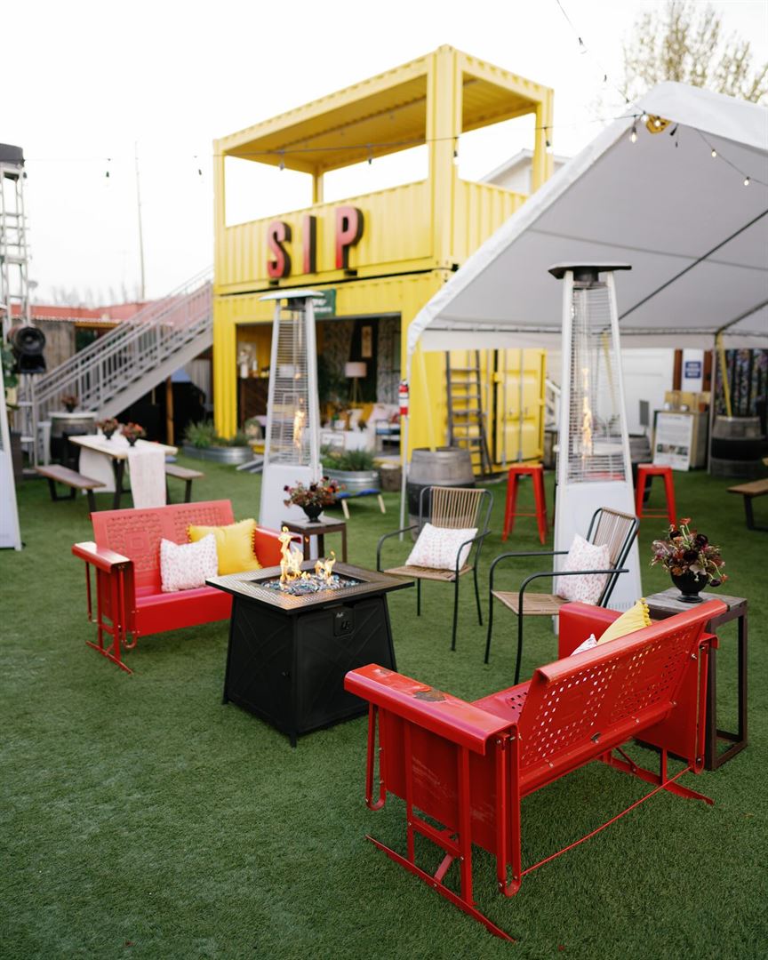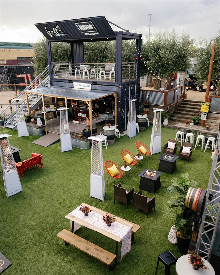To elevate the ambiance, two stylish double-decker shipping containers have been transformed into chic lounge areas. One features a cozy living room for intimate gatherings, while the other houses a full-service bar for crafted cocktails. Both offer panoramic views from their top decks, providing the ideal vantage point to soak in the lively energy of the crowd.