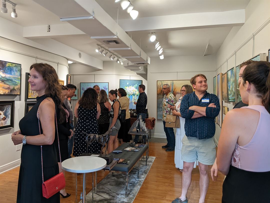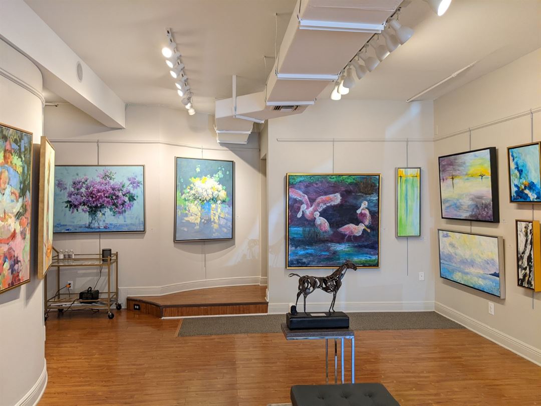 LePrince Fine Art Gallery showcases a beautiful selection of contemporary impressionist, expressionist, and abstract artwork by local and international artists. The gallery features a backroom with staging area, a small fridge, sink and wine cooler. The gallery is split with a wave wall in the center creating two connecting areas. Our speaker system allows music of choice. The gallery makes a stunning backdrop for events, receptions, mixers, wine tasting and more. Located across the street from Cambier Park.