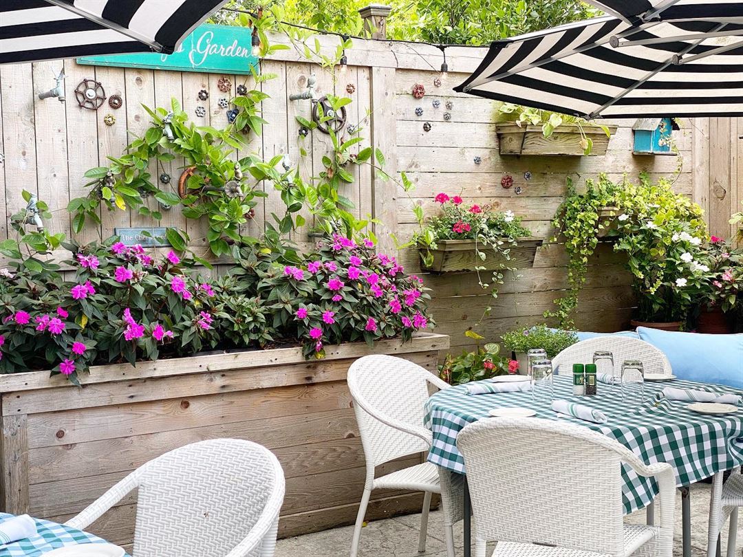 Our lush terrace garden on the western side of the restaurant frequently hosts showers, small wedding receptions, cocktail receptions, and family dinners. The private dining room inside the restaurant is ideally suited to business gatherings or other events requiring an elegant setting and the privacy of closed doors. The fountain courtyard outside of Ridgway and Tony’s Off Third has its own bar and is a festive location for a cocktail party. Our indoor bar, with the popular banquette lounge, is a terrific option in hotter or more inclement months.