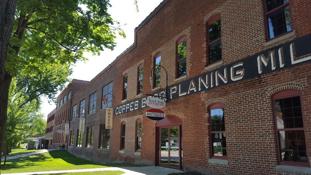 Located inside our 19th c. restored furniture factory, you’ll find the Coppes Commons Event Centers. The historic event venue offers elegant industrial ambiance with exposed brick and beams, original hardwood floors, banked windows and other factory features warmly lit with custom-made chandeliers and glittering string lights.