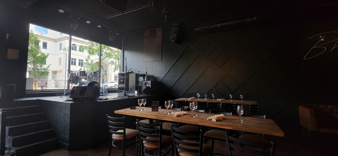 Our venue has one large main dining & bar area with 3 available VIP rooms. Two can be secluded and one is an open nook. Our venue includes an elevated stage & state of the art sound system, full service bar, restrooms, modern decor, upscale lounge night life vibe, and a customizable menu for your perfect party.
