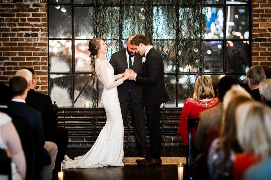 Room With A View at Marathon Village, is a gorgeous venue located in downtown Nashville, Tennessee. Our Event Space is located in a 114-year-old factory with a historic Marathon Car Museum in the main lobby. Its antique oak stairs, original flooring, exposed brick walls, high ceilings, and large windows overlooking Nashville's downtown skyline is the most romantic backdrop for your wedding!