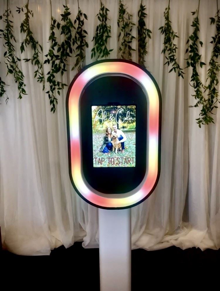 A digital, open air, sleek photo booth with instant sharing to your guests right to their phones! Includes unlimited photos, GIFs, boomerangs, glam filters and more!