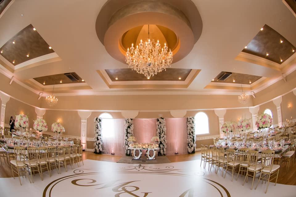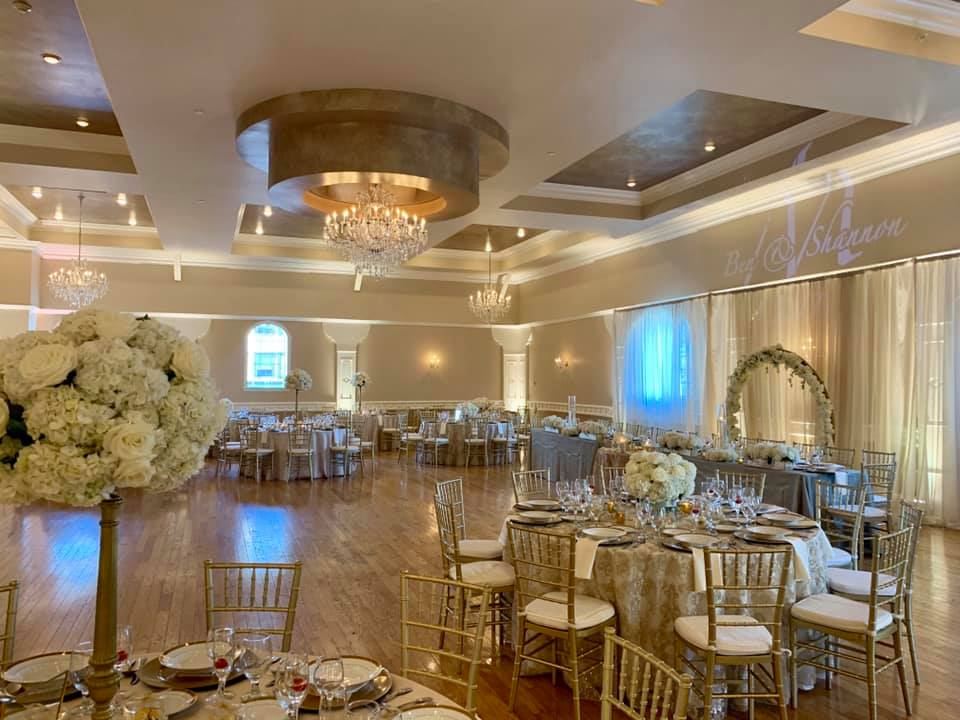 As the name suggests, the Grande Ballroom is a large space on the second floor of the restaurant that accommodates up to 275 guests. This elegant space has a neutral color palette so couples can decorate it in their wedding color and style. It features luxurious chandeliers, stunning hardwood floors and high ceilings with arched windows.